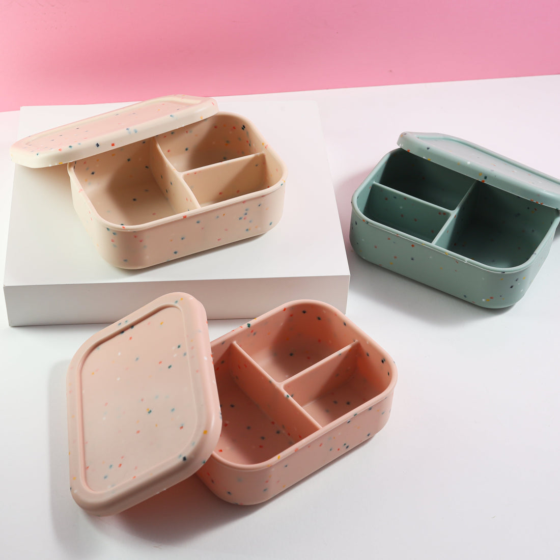 Eco-Friendly food grade BPA Free three compartments leakproof kids lunch box with lid. Microwave safe....